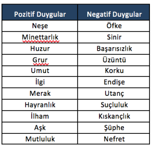 Yukarıda bir takım duyguları sıralamaya çalıştım, bunlara daha farklıları da eklenebilir. Hedefimiz her zaman “iyi hissettiren” duyguları artırmak. Çünkü araştırmalar, pozitif duyguların bizi stresle baş etme ya da hedeflere ulaşma konusunda daha güçlü kıldığını, negatif duyguların ise mutsuz, depresif ve içine kapanık yaptığını gösteriyor. Ancak “iyi hissettiren duyguları artırmak” sürekli gülümseyerek ortada dolaşmak, negatif bir duygu hissettiğinde o duygudan kaçmak, onu bastırmak demek değil.